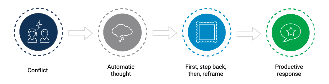 Participants will take the knowledge they have gained so far to learn how to spot and avoid their harmful tendencies and move towards productive conflict behaviors. Techniques will be taught to pause and reframe automatic thoughts and impulses in order to respond in a productive way.